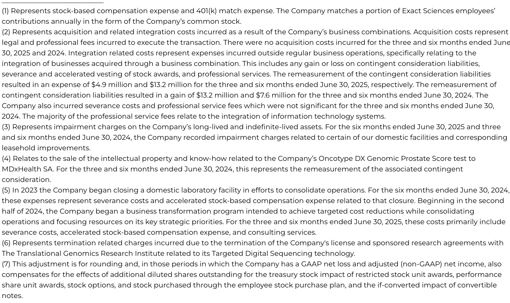 Important factors that could cause actual results, conditions and events to differ materially from those indicated in the forward-looking statements include, among others, the following: our ability to successfully develop and commercialize new products and services and assess potential market opportunities; our ability to successfully and profitably market our products and services; the acceptance of our products and services by patients and healthcare providers; our reliance upon certain suppliers; our ability to retain and hire key personnel; approval and maintenance of adequate reimbursement rates for our products and services within and outside of the U.S.; the amount and nature of competition for our products and services; the effects of any judicial, executive or legislative action affecting us or the healthcare system; changes in government policies, laws, regulations, and staffing; recommendations, guidelines and quality metrics issued by various organizations regarding cancer screening or our products and services; our ability to obtain and maintain regulatory approvals and comply with applicable regulations; our ability to protect and enforce our intellectual property; our success establishing and maintaining collaborative, licensing, and supplier arrangements; the results of our validation studies and clinical trials, including the risks that the results of future studies and trials may differ materially from the results of previously completed studies and trials; our ability to manage an international business and our expectations regarding our international expansion and opportunities; the potential effects of changing macroeconomic conditions and geopolitical conflict; the possibility that the anticipated benefits from our business acquisitions or collaborative or licensing arrangements will not be realized in full or at all or may take longer to realize than expected; the possibility that the anticipated benefits from our restructuring and cost reduction initiatives will not be realized in full or at all or may take longer to realize than expected; the outcome of any potential litigation or legal proceeding; and our ability to raise the capital necessary to support our operations or meet our payment obligations under our indebtedness. The risks included above are not exhaustive. Other important risks and uncertainties are described in the Risk Factors sections of our most recent Annual Report on Form 10-K and any subsequent Quarterly Reports on Form 10-Q, and in our other reports filed with the Securities and Exchange Commission. We undertake no obligation to publicly update any forward-looking statement, whether written or oral, that may be made from time to time, whether as a result of new information, future developments or otherwise.
